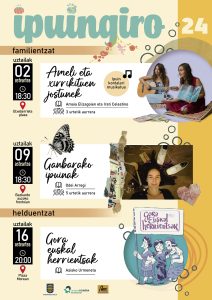 IPUINGIRO ekimenaren bidez, herriko beste hiru txokootan eskainiko dugu ikuskizun bana: Etxeberrieta plazan, Bazkardo auzoko frontoian eta Plaza Morean.