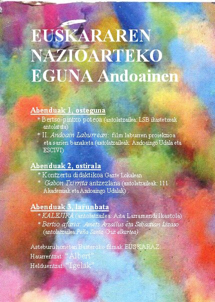 El Ayuntamiento de Andoain y algunos grupos y centros escolares del municipio han organizado un programa para la celebración del Día Internacional del Euskera del 1 al 4 de diciembre: